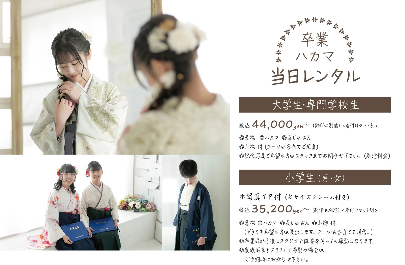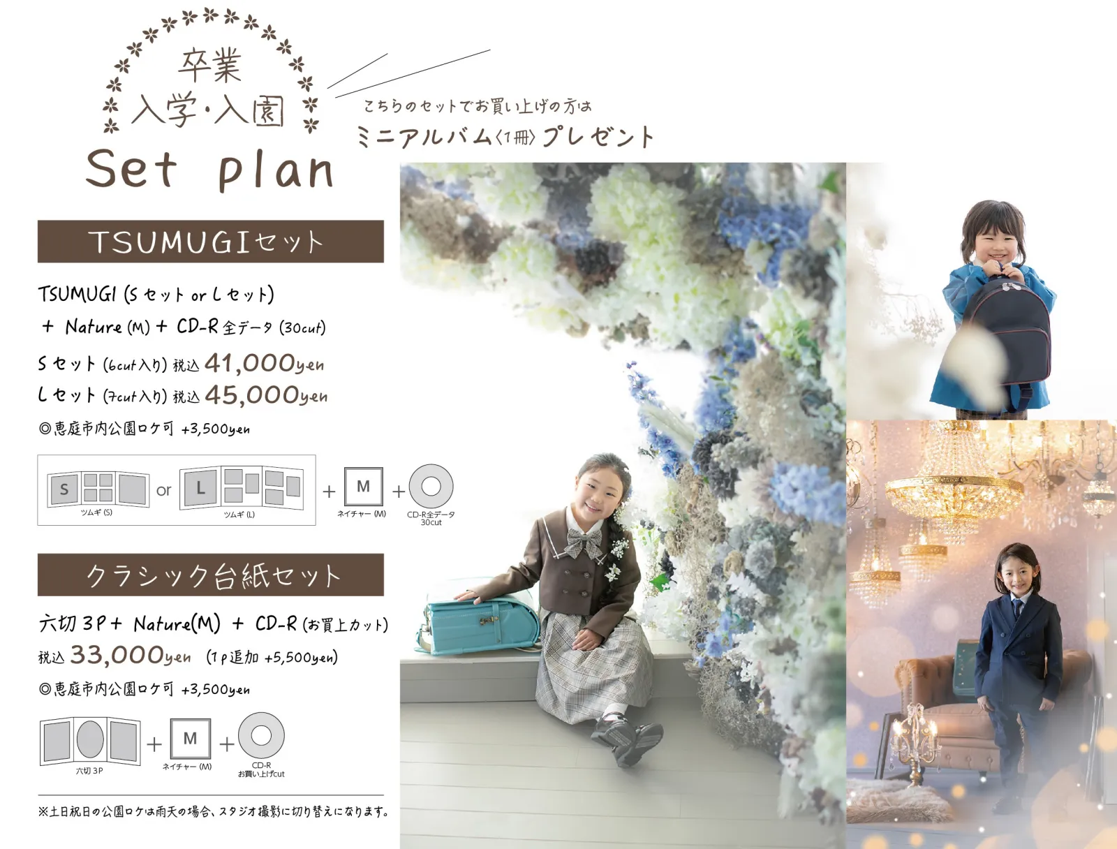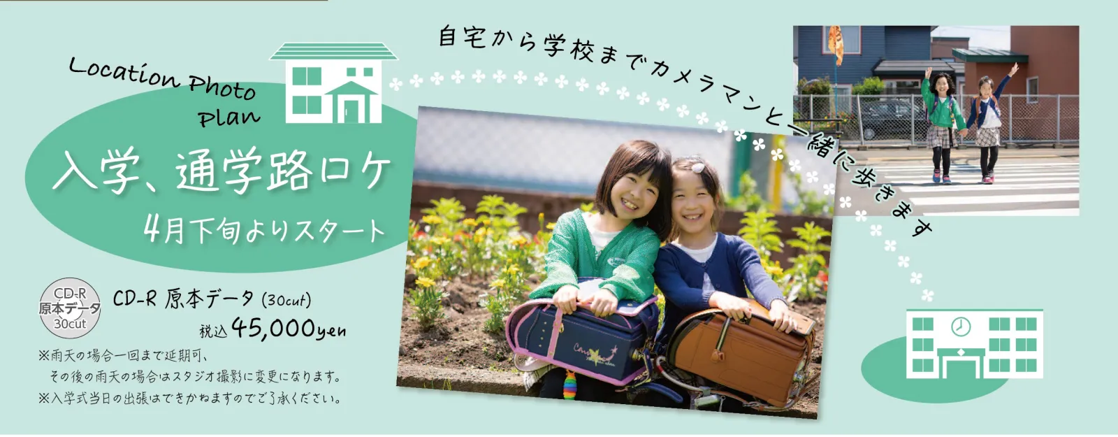 人生の節目に思い出いっぱいの制服やランドセルで撮った 記念写真は一生の思い出になります。 お子様の新生活でのさらなる成長を願って。